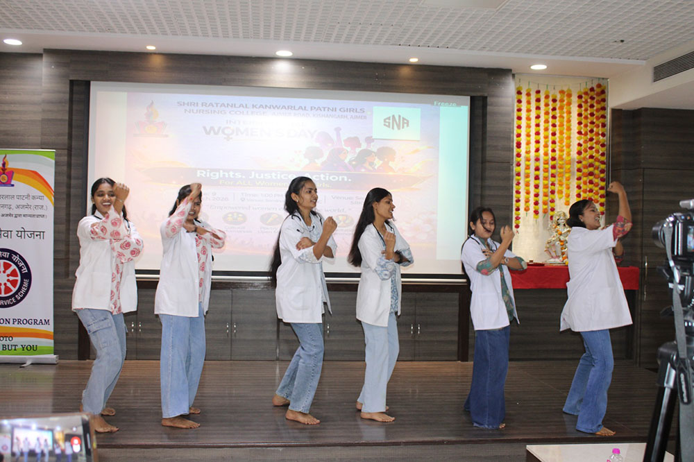 International Women’s Day was organized jointly by Shri Ratanlal Kanwarlal Patni Girls Nursing College and Shri Ratanlal Kanwarlal Patni Girls College. On this occasion, the Principal of the Nursing College, Mr. Himanshu Raghav Dadhich, and the Principal of the Degree College, Mr. Shailendra Kumar Patni, were present.